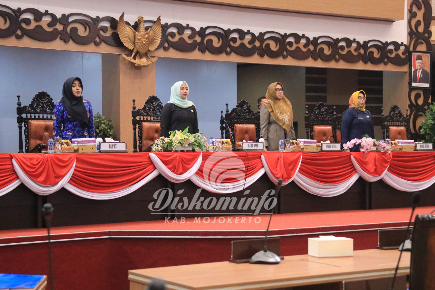 Pelaksanaan rapat paripurna yang digelar di ruang rapat Graha Whicesa DPRD Kabupaten Mojokerto, Jl. R.A Basuni, Sooko, Kecamatan Sooko, Kabupaten Mojokerto, pada Senin (19/5) siang. Rapat tersebut dipimpin langsung oleh Ketua DPRD Kabupaten Mojokerto Ayni Zuroh.